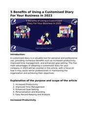 Additionally, the book should be visually appealing with a suitable cover that reflects the intended audience. Finally, special features such as quotes, prompts or spaces for personal reflection should also be included to make the diary book unique and engaging for the user.